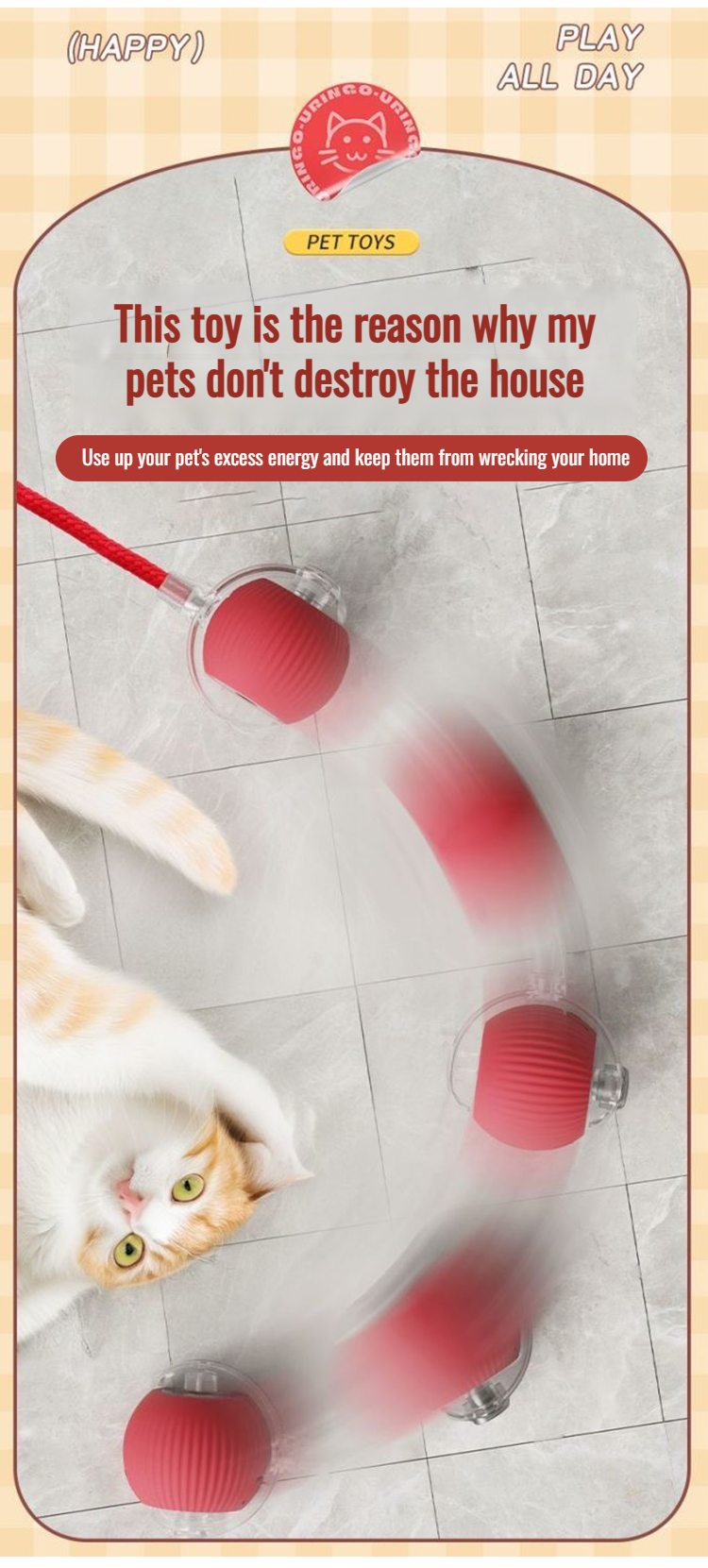 Intelligent Automatic Jumping Pet Toy Ball with Rope Teaser Toy Ball